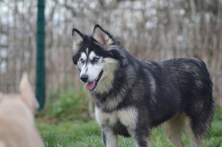 Il est originaire de Sibérie, il est connu pour sa beauté spectaculaire et son endurance impressionnante, aux yeux bleus perçants et au pelage épais, double et souvent bicolore.