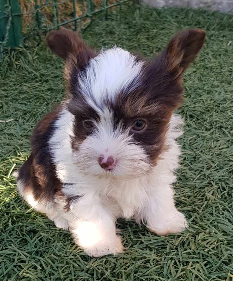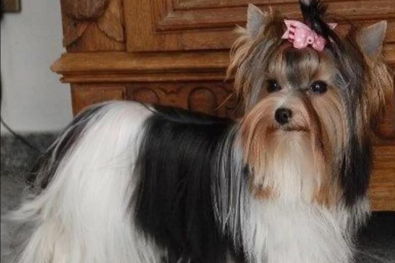 Il présente une variation du Yorkshire Terrier, mais avec des couleurs différentes.